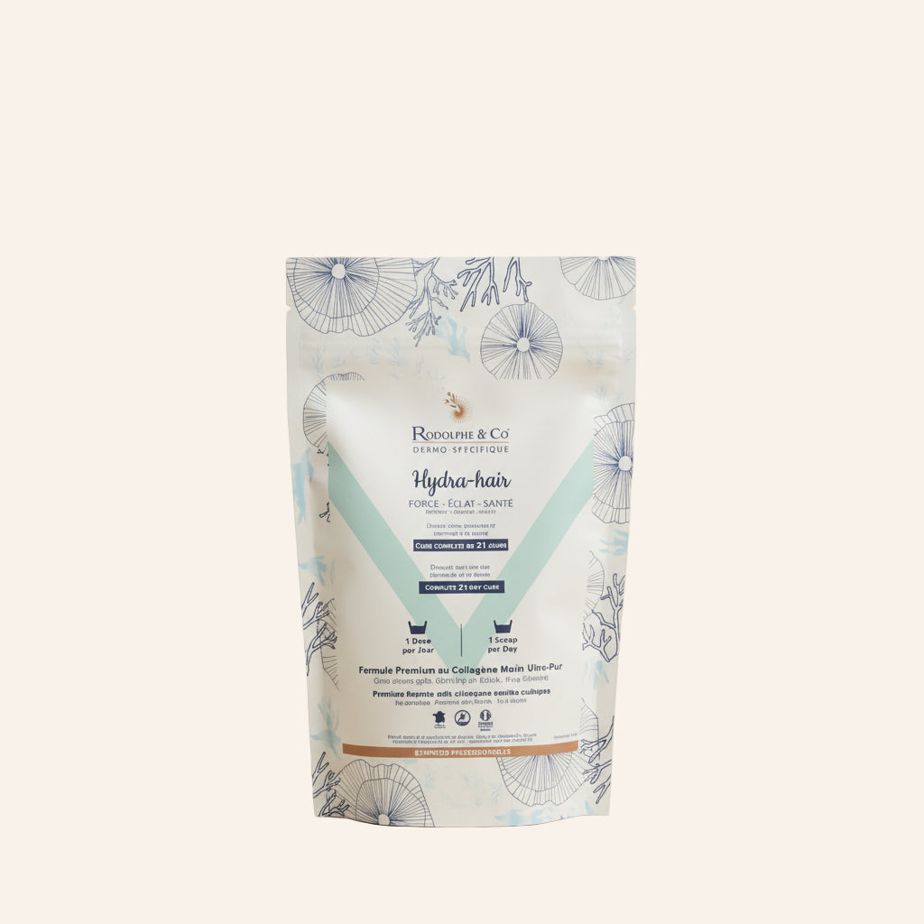 Le collagène marin, riche en acides aminés essentiels pour les cheveux renforce la structure capillaire, son élasticité et sa résistance. Il stimule la croissance tout en apportant aux cheveux hydratation et brillance.